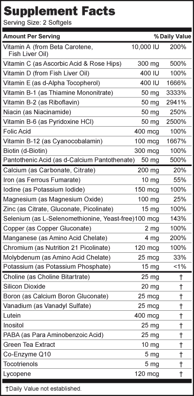 Other Ingredients: Soybean Oil, Mixed Tocopherols Concentrate, Gelatin, Glycerin, Purified Water, Soy Lecithin, Rose Hips, White Beeswax, St. John's Bread, Caramel.