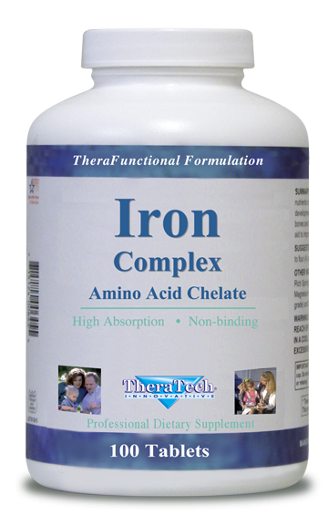 MINERALS > Iron ComplexItem No. 227 / 100 Tablets Balanced non-binding herbal formulation. High absorption amino acid chelate mineral form with added ascorbic acid for improved iron absorption. Iron is an essential mineral and the key ingredient in hemoglobin, which is the main component in red blood cells. Hemoglobin acts as a carrier of oxygen from the lungs to the tissues, and aids in the removal of carbon dioxide from the tissues.* Product Benefits
