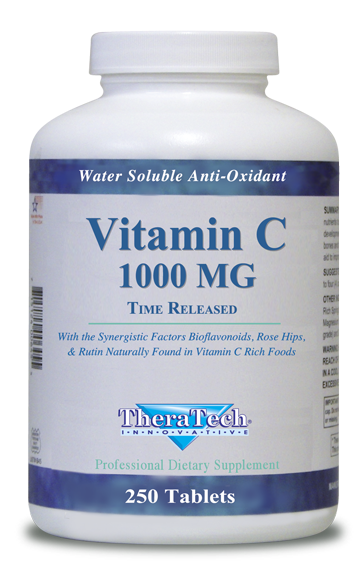 VITAMIN C > Vitamin C 1000 MG Time Released Item No. 178 / 100 Tablets Balanced formula with natural bioflavonoids, rose hips and rutin. Time-released water soluble antioxidant. Vitamin C (Ascorbic Acid) is required for the production of collagen, the intercellular substance"cement" which gives structure to muscles, vascular tissues, bones and cartilage. Vitamin C also contributes to the health of teeth and gums and aids in the absorption of Iron and Folic acid.* The primary role of Vitamin C is as an antioxidant. This role is to neutralize the free radicals that attack our vital cell components, causing extensive damage to cell membranes and the cell nucleus.* Product Benefits